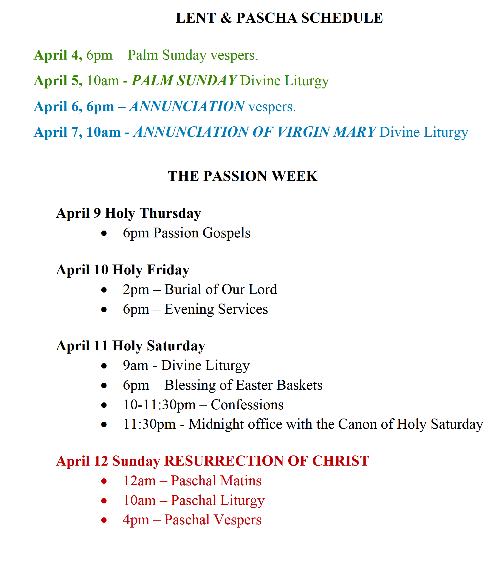 Divine Liturgy Every Sunday at 10:00 am, followed by the Fellowship meal.